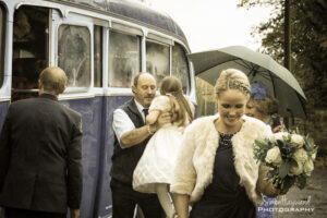 The flowers looked amazing, the transport was classic, the bride looked awesome….the weather was…WET (to say the least) !!!